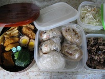オニギリは鶏飯のと、ひじきのかやくご飯と